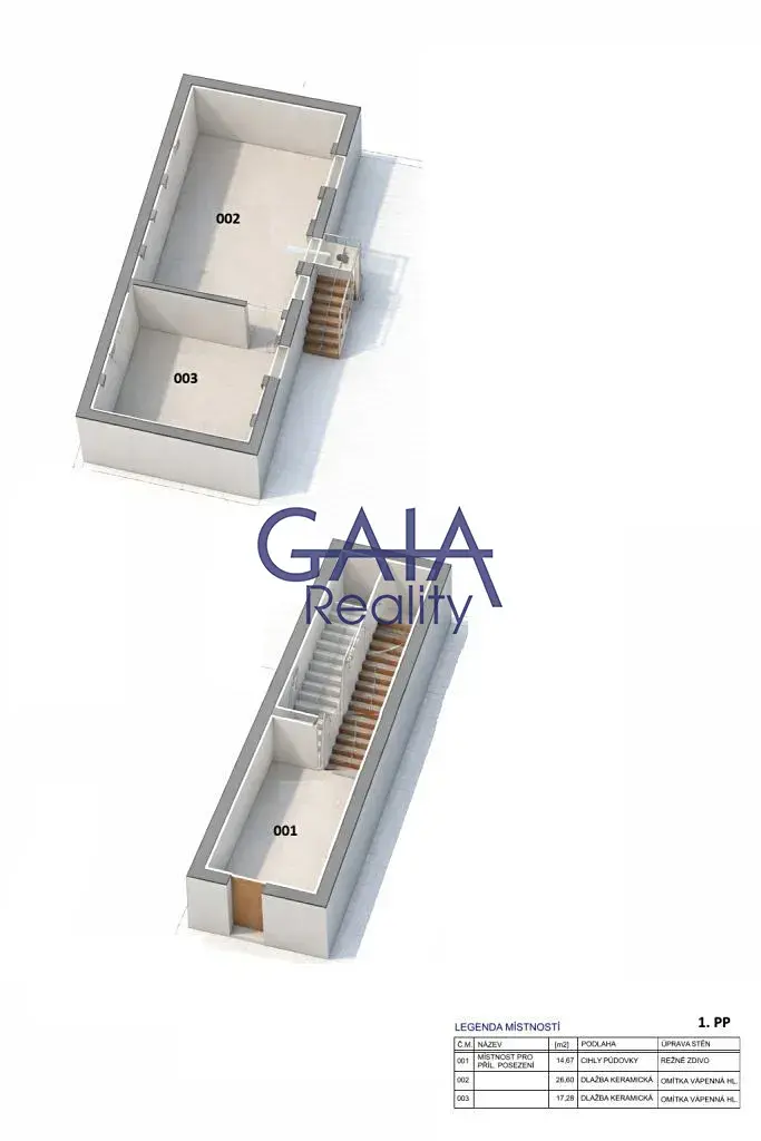Nabízené prostory jsou umístěné v I. podzemním podlaží a I. nadzemním podlaží, které jsou vzájemně propojené a rozšiřují tak možnosti využití celého objektu.