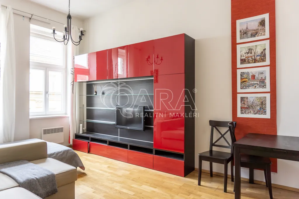Nabízím k pronájmu byt 1+1 o velikosti 32,3 m2, který se nachází ve 4. NP cihlového domu s výtahem. Byt je vzdušný díky vysokým stropům (3,4 m).