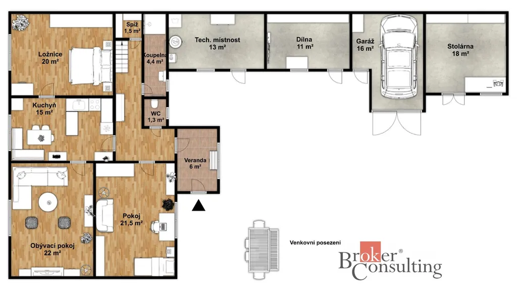 - Garáž, dílna, stolárna, hospodářské zázemí