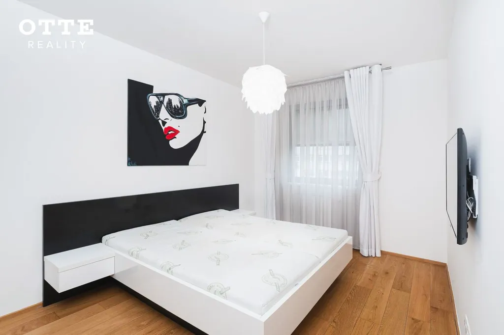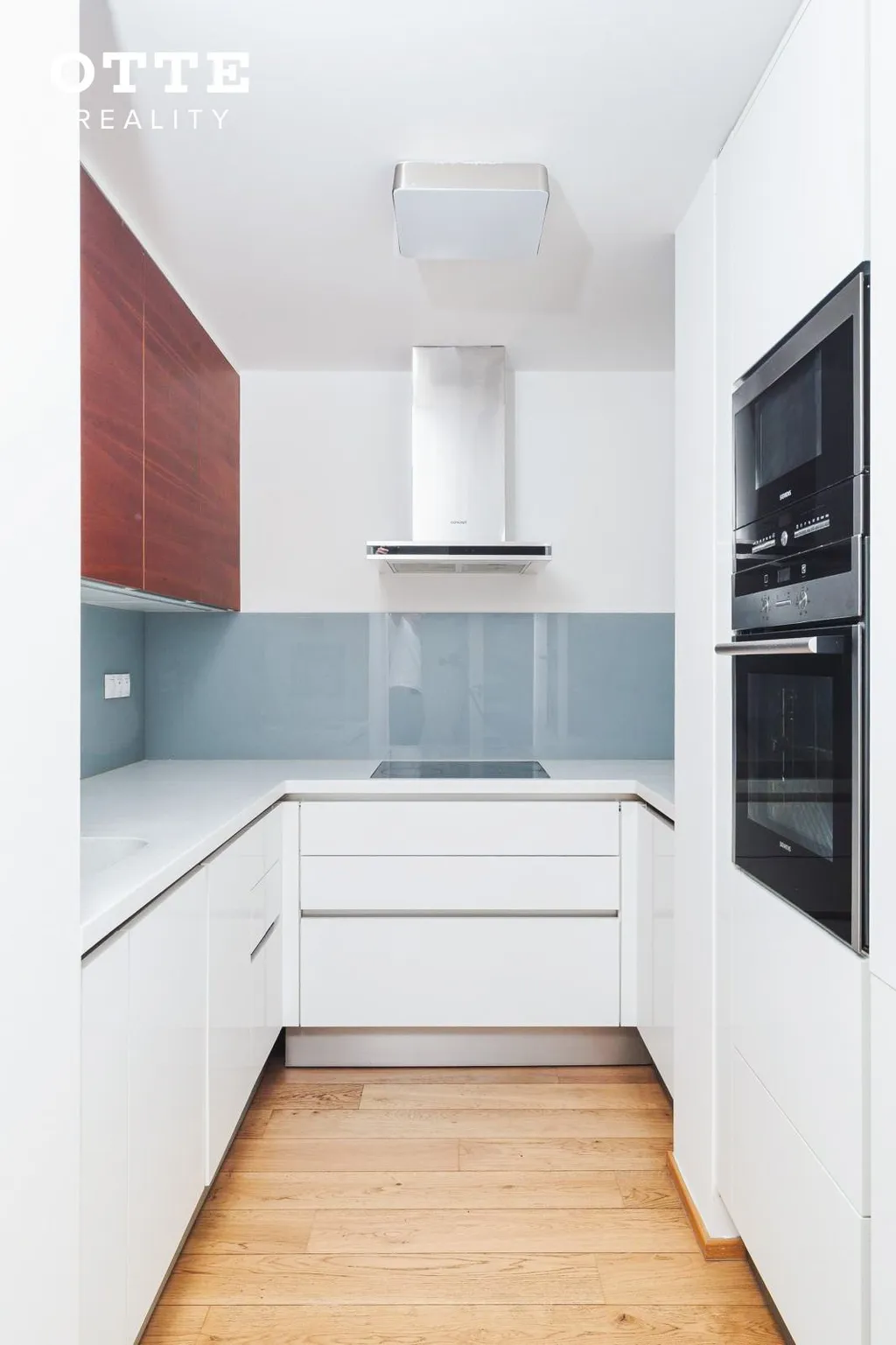 Byt je útulný a působí svěžím a moderním dojmem. Teplo a ohřev vody zajišťuje systém dálkové dodávky z teplárny. Podlahu kryjí dřevěné podlahy nebo dlažba, v oknech jsou vnitřní žaluzie. V bytě je umístěn videotelefon pro komunikaci s recepcí, samozřejmostí je internet, TV, SAT. Předmětem pronájmu a součástí ceny je také zděná sklepní kóje o velikosti 3,5 m2 umístěná na stejném podlaží domu jako je byt, vhodná pro uskladnění sportovních či sezónních věcí. Garážové parkovací stání ve druhém podzemním podlaží domu, ke kterému lze pohodlně dojet výtahem je za cenu 1.600 Kč/měsíc.