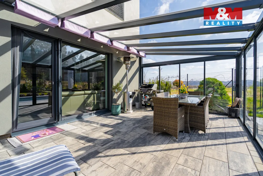 Hledáte dokonalou rovnováhu mezi moderním designem, komfortem a klidnou lokalitou? Pak jste tu správně - 5+kk se zimní zahradou a bazénem na Včelné. Tato lokalita je vyhlášená jako jedno z nejlepších míst pro život díky klidu, přírodě a skvělé dostupnosti do centra města. Celková plocha domu je 173 m² s pozemkem 439 m². Srdcem nemovitosti je prosvětlený obývací pokoj s kuchyní, na který navazuje celoročně obyvatelná zimní zahrada. Ta nabízí unikátní prostor pro relaxaci i v zimních měsících. Dále se můžete těšit na další čtyři obytné pokoje plus šatnu. Exteriér disponuje vlastním bazénem se zastřešením a zahradou s automatickým zavlažováním. Vysoký standard bydlení doplňuje podlahové vytápění, předokenní žaluzie pro tepelný komfort a soukromí, prostorná garáž a další parkovací stání. Největší výhodou je umístění této nemovitosti, nachází se na okraji zástavby s nerušeným výhledem. Hledáte-li nadstandardní bydlení bez nutnosti dalších investic v top lokalitě, je tento dům ideální volbou