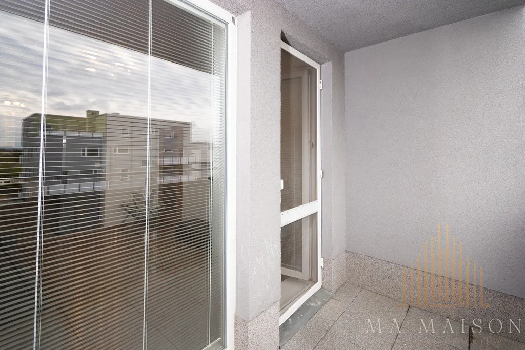 Byt se nachází v 4. patře budovy s výtahem a sestává ze: vstupní předsíně s vestavěnou šatní skříní, komory s pračkou a policovým systémem, koupelny s vanou, WC a úložnými prostory, samostatné ložnice, vybavené manželskou postelí a šatními skříněmi včetně komody se šuplíky a pracovní desky a z obývacího pokoje s kuchyňským koutem, kde je k dispozici rozkládací pohovka, TV stěna včetně TV, jídelní stůl, lednice s mrazákem, myčka nádobí, trouba, varná deska, mikrovlnka a spousty úložných prostorů. K bytu náleží vlastní balkon 4 m² přístupný z obývacího pokoje. Obyvatelé bytu jistě ocení, obzvláště v letním období, síťky proti hmyzu v oknech a u balkonových dveří.