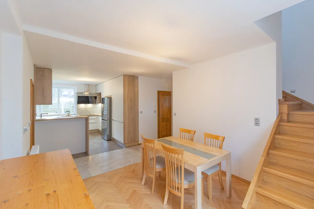 V roce 2022 proběhla rozsáhlá a pečlivá rekonstrukce domu, v rámci které byly provedeny nové rozvody vody, odpadů a elektroinstalace. Současně byla osazena plastová okna vyšší třídy zn. Internorm s důrazem na komfort, úsporu energií a dlouhou životnost. Zároveň byl vyměněn automatický kotel včetně radiátorů pro efektivní a úsporné vytápění. Interiér prošel promyšlenou obnovou – původní parkety byly odborně renovovány a navráceny do své původní krásy. Součástí úprav byla také instalace bezpečnostních vstupních dveří a nových interiérových dveří z masivu. V obou patrech byly nově vybudovány koupelny a interiér nyní elegantně propojuje dubové schodiště, které domu dodává nadčasový charakter a teplo přírodního materiálu.