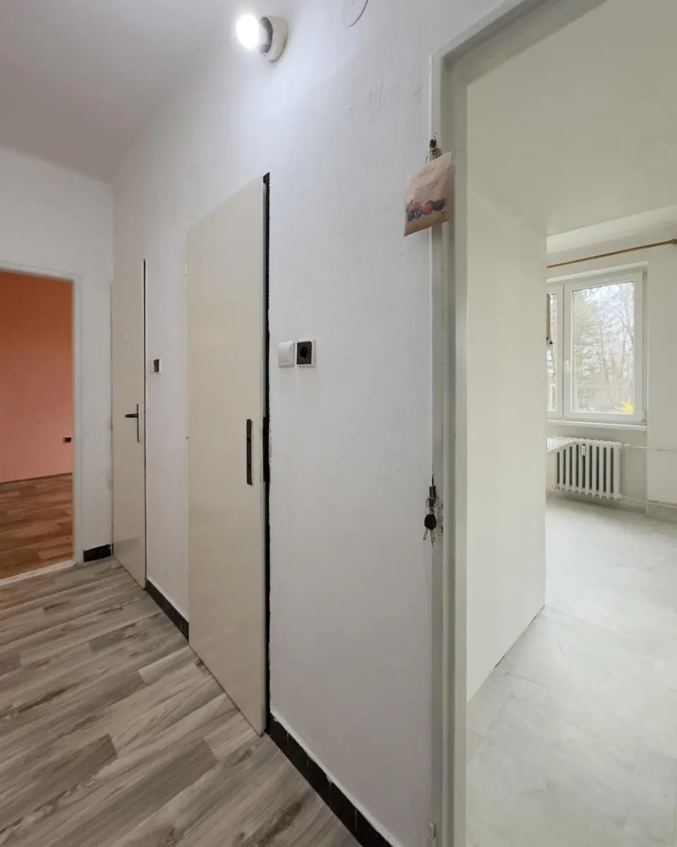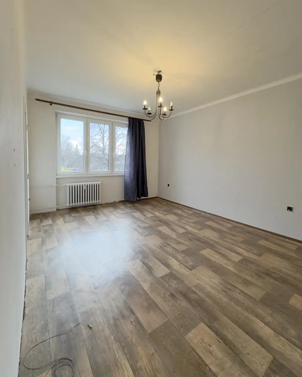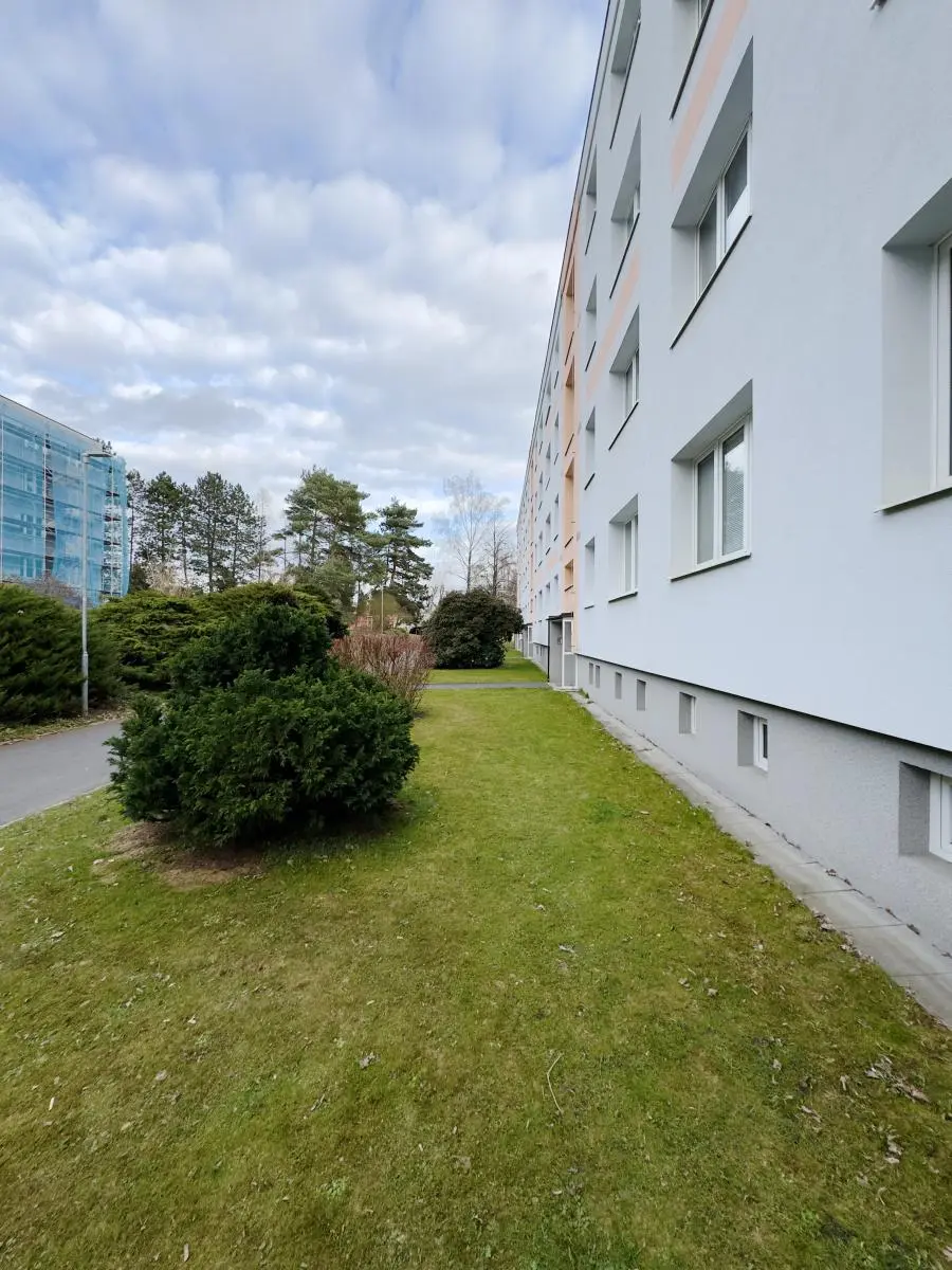 Bytový dům prošel kompletním zateplením a má novou fasádu s plastovými okny. Byt je převážně v původním stavu s umakartovým jádrem (koupelna, WC) a linoleem na podlahách. Kuchyň je vybavena kuchyňskou linkou s přípojkou na pračku a kombinovaným sporákem na plyn i elektřinu. Součástí bytu je i sklepní kóje.