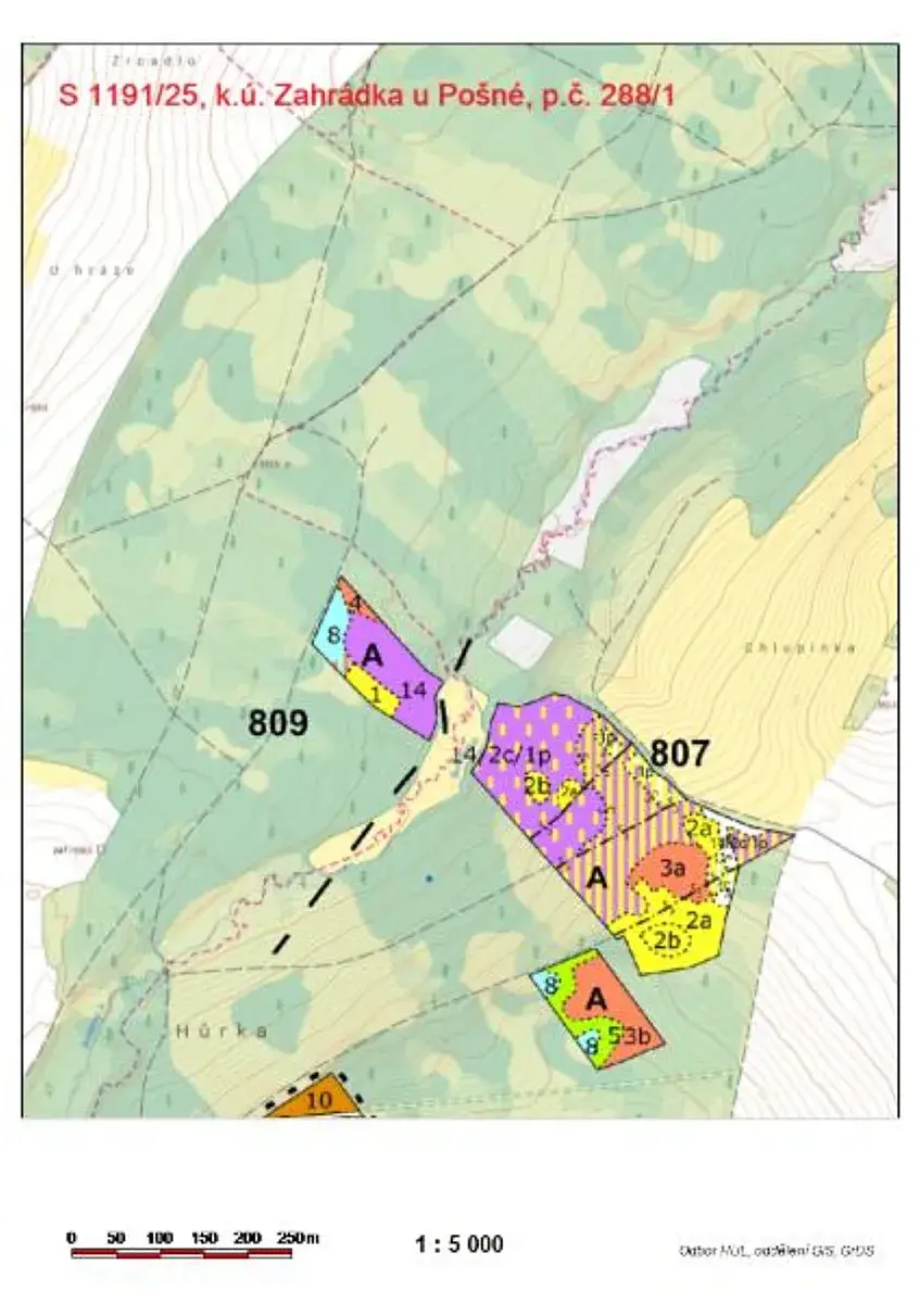 Jedná se o prodej lesního pozemku parc. č. 288/1 o výměře 12283 m2, nepravidelného tvaru, situovaného severně od obce Zahrádka mezi privátními lesy. Po provedených těžbách byla část plochy zalesněna. Část pozemku je zaplocená a osázená bukem, část je pak nově zasázená smrkem.