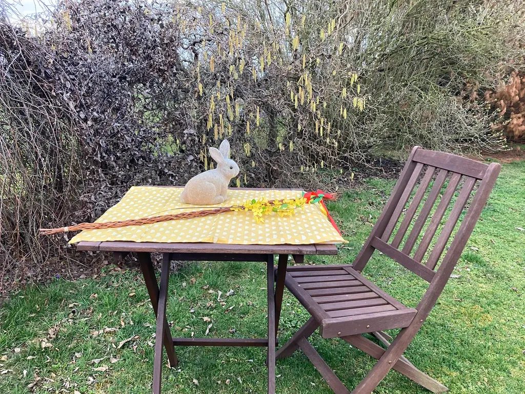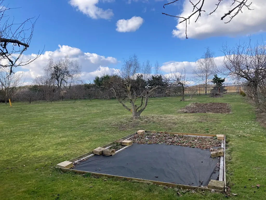 Dům je obklopen nádhernou rozhlehlou zahradou rozdělenou nenásilně na oblasti podle jejich využívání. Najdete zde ovocný sad, jahodoviště, travnaté hřišťátko pro malý fotbal nebo badminton, bylinkové záhony.