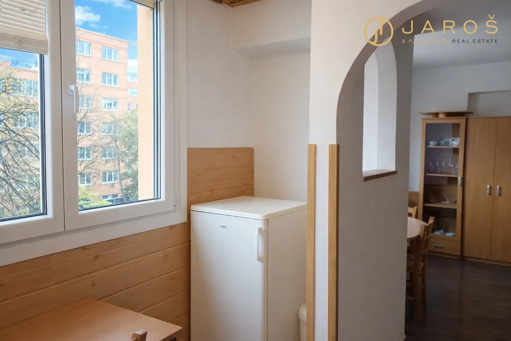 Dispozice bytu je prakticky řešená, přičemž ložnice je chytře přepažená, což umožňuje vytvoření odděleného prostoru například pro pracovnu či dětský kout. Byt se prodává částečně zařízený a součástí prodeje je i nábytek. Okna jsou plastová, doplněná vnitřními žaluziemi a také venkovními žaluziemi na dálkové ovládání, které zajišťují komfort i dostatek soukromí. Bytové jádro je zděné.