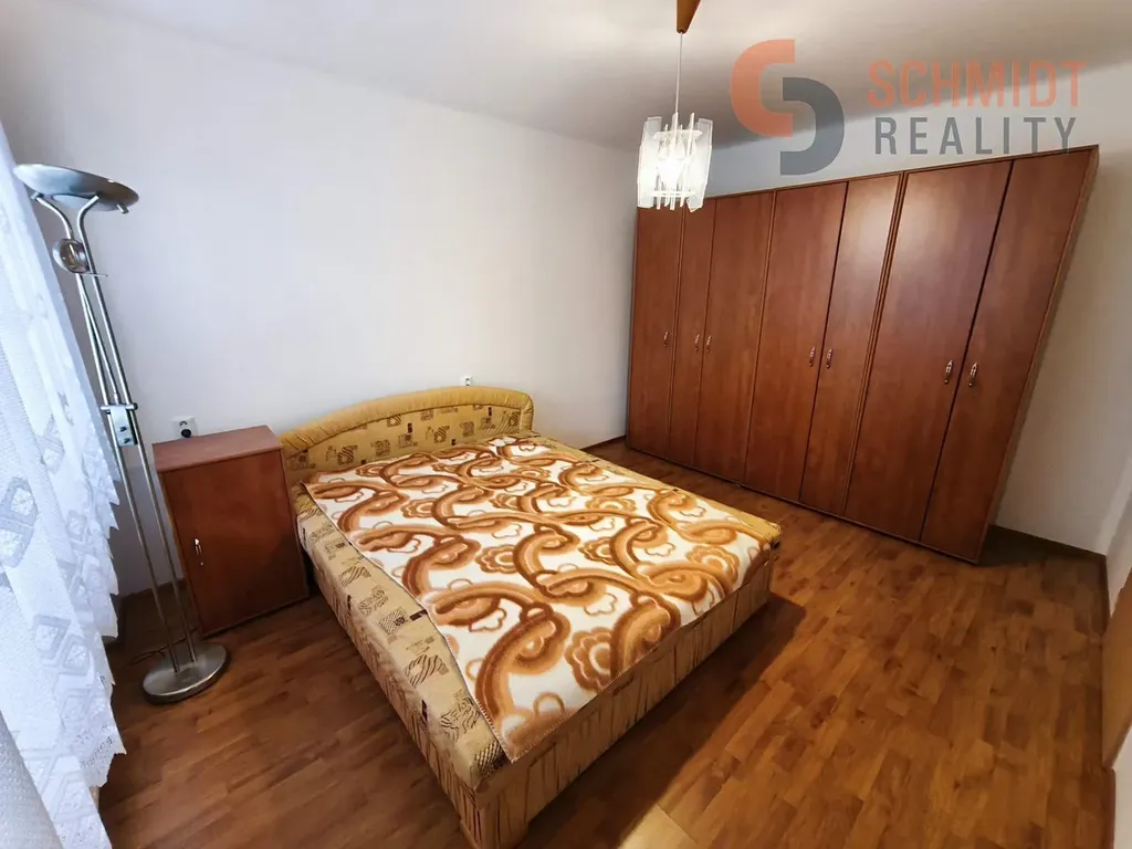 Dispozice bytu: obývací pokoj 17,43 m2, ložnice 13,86 m2, kuchyň 10,29 m2, předsíň 8,82 m2, koupelna se sprchovým koutem - po rekonstrukci spojena s WC 5,05 m2 (WC odděleno neuzavřenou příčkou). K bytu náleží 2 sklepy 4,39 m2 a 1,69 m2 a možnost užívat sklad 6,60 m2, který je společný pro 3 byty.