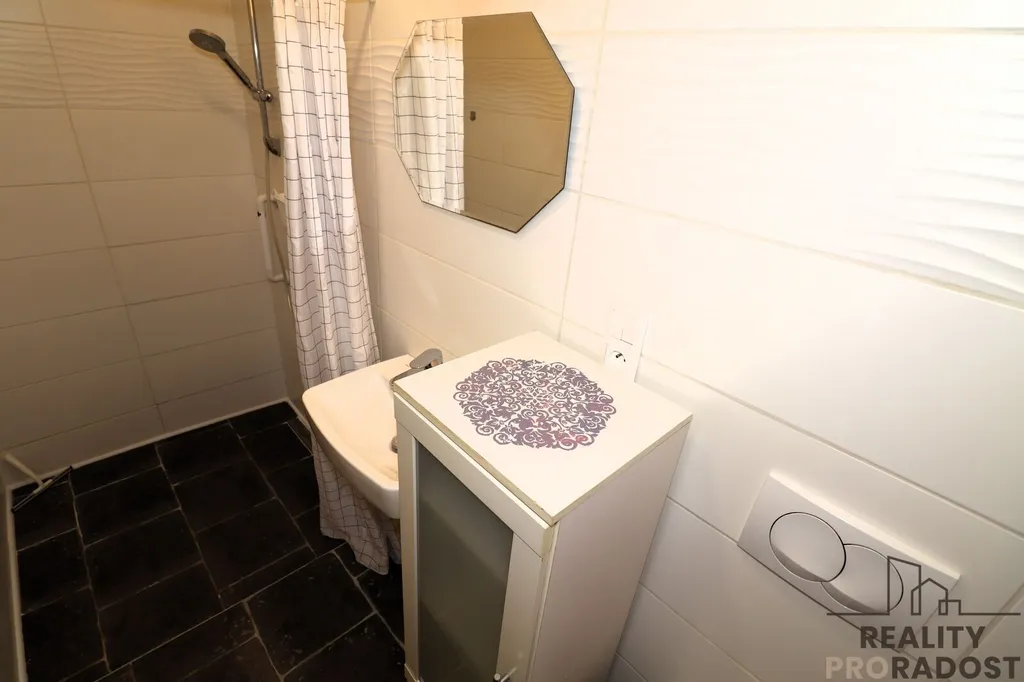 - Koupelna (3,5m²) Koupelna se sprchovým koutem bez vaničky, umyvadlem a WC.