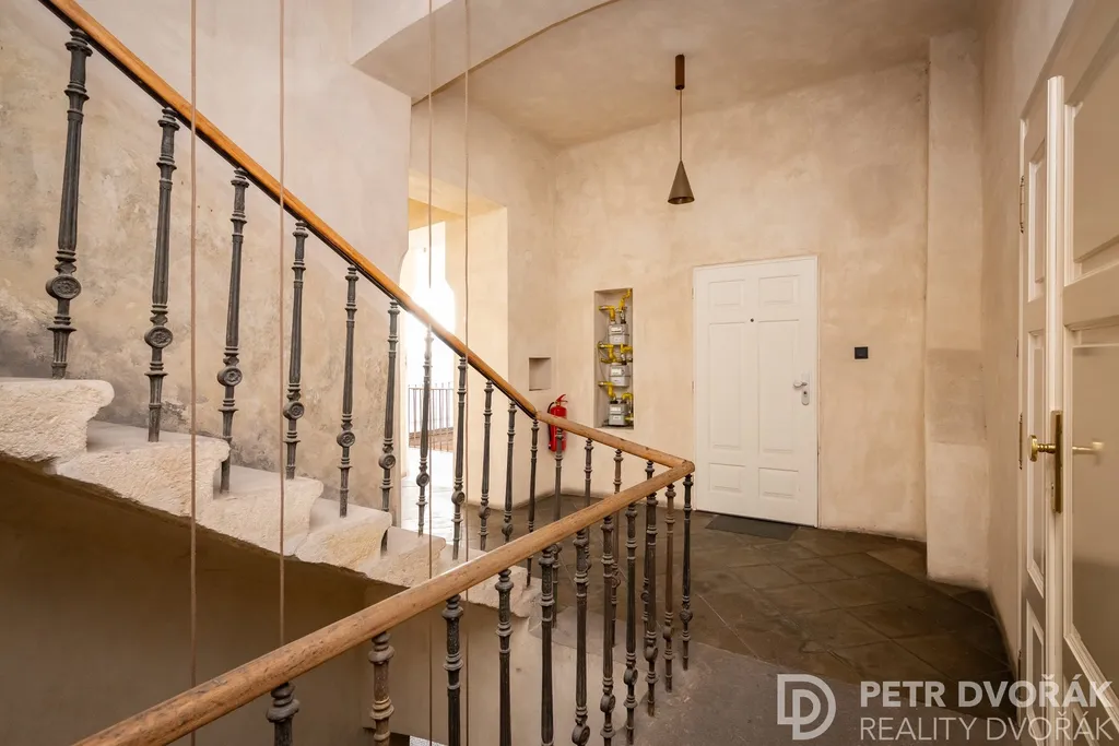 Dům stojí od 15. století. Turisté chodí kolem, ale dovnitř nevstoupí – průjezd s kamennou dlažbou, schodiště s litými balustrádami a obnažené zdivo jsou každodenní realitou těch, kdo tu bydlí. Dům je součástí Pražské památkové rezervace UNESCO a prošel citlivou rekonstrukcí – ne aby vypadal historicky, ale protože historický je.