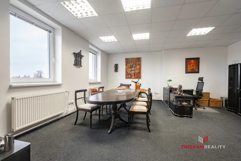 Jedna kancelář má výměru cca 33 m², druhá, průchozí, cca 25 m². Alternativě lze za příplatek využít další kancelář o cca 20 m², kde je v současné době uložen archiv.