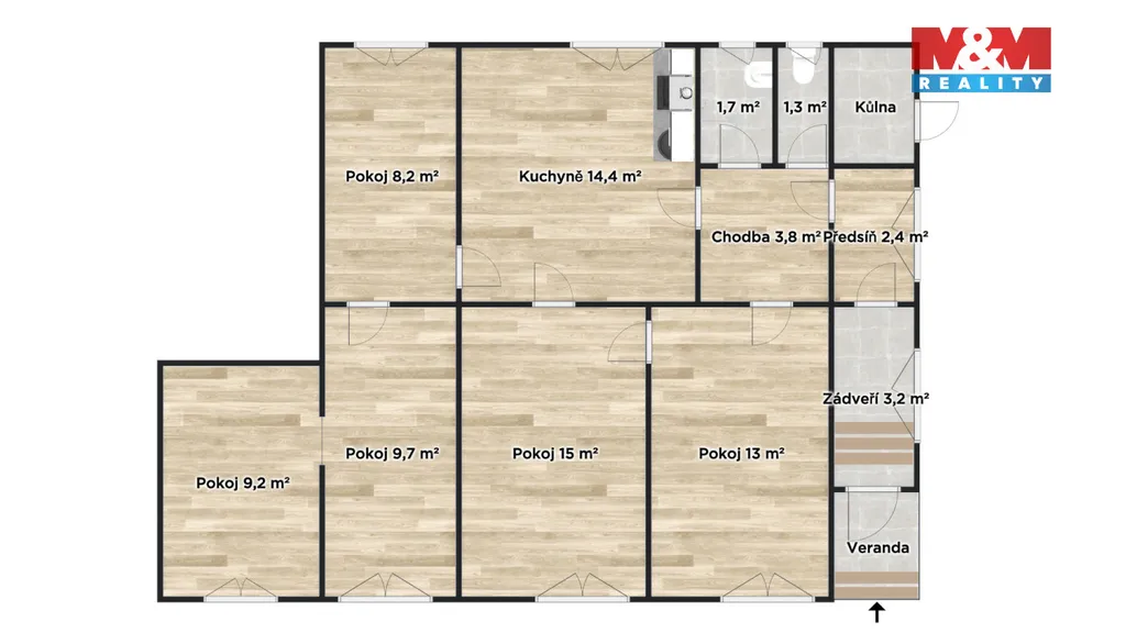 Součástí domu jsou také 2 zděné místnosti sloužící jako technické zázemí.