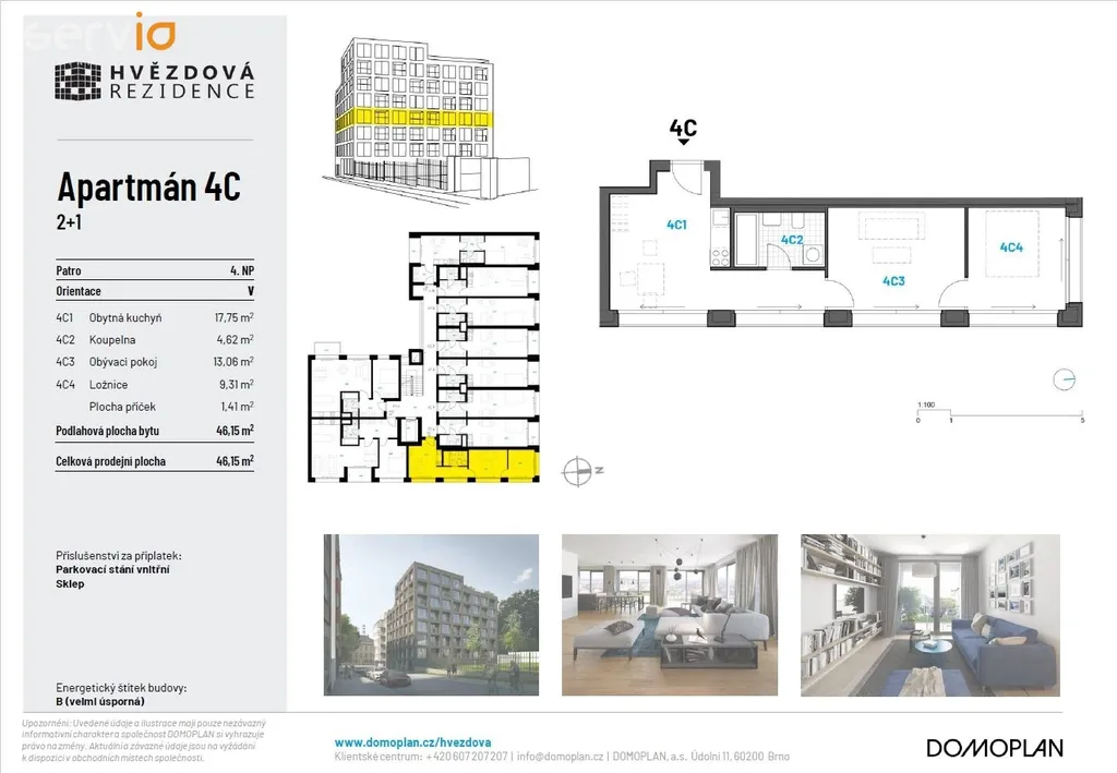 Rezidence Hvězdová jedinečně kombinuje všechny ingredience moderního městského bydlení. Celá čtvrť navíc aktuálně prochází výraznou proměnou – v přímém sousedství vzniká nové komunitní a kulturní centrum, plánují se originální rezidenční komplexy jako např. Pekárenský dvůr, jejichž součástí bude městská zahrada i pestrá škála služeb. Díky přísně geometrické fasádě a promyšlené dispozici má každá jednotka alespoň jednu plně prosklenou stěnu, díky čemuž mizí hranice mezi apartmánem a jeho okolím. Architekt Roman Gale zároveň na plášť domu navrhl speciální řešení omítky v zajímavém lávovém designu, která bude první podobnou realizací v Brně. Rezidence Hvězdová se také stala realitním projektem roku 2020 pro Jihomoravský kraj.