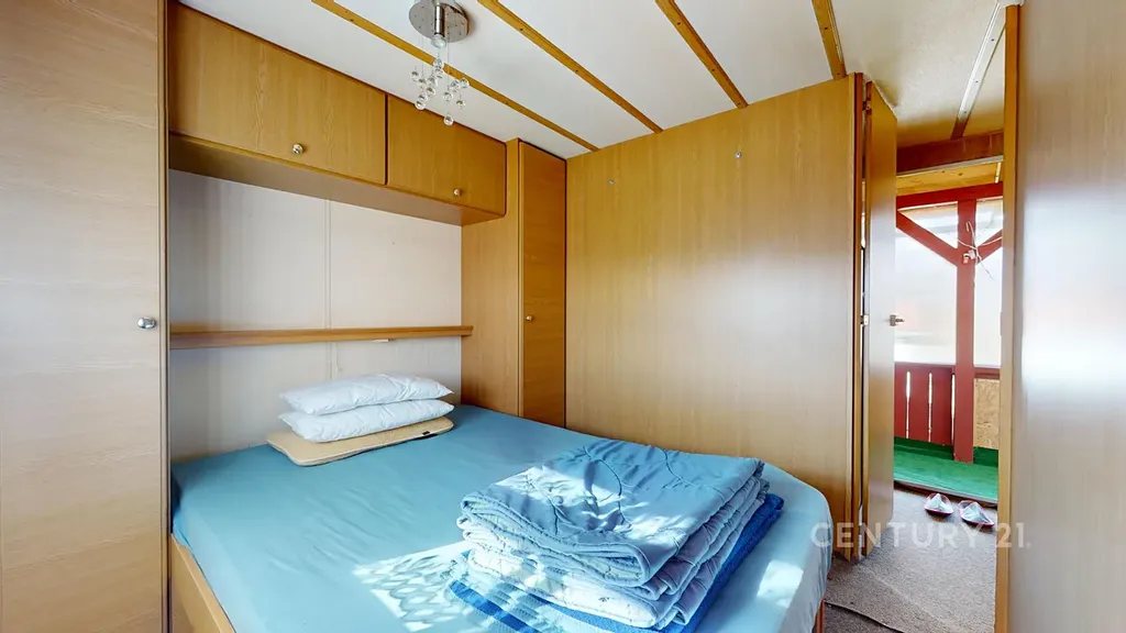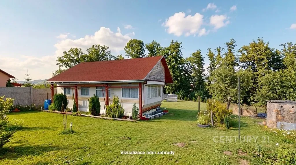 Celková velikost pozemku je 948 m². To je dost místa na bazén, ovocný sad, dětské hřiště i pořádný kus trávníku. Na pozemku stojí mobilheim 3+kk o zastavěné ploše 47 m², který je připojen na elektřinu a vodovod. Nejde o žádnou kůlnu na nářadí, ale o zázemí, které můžete využívat celoročně.
