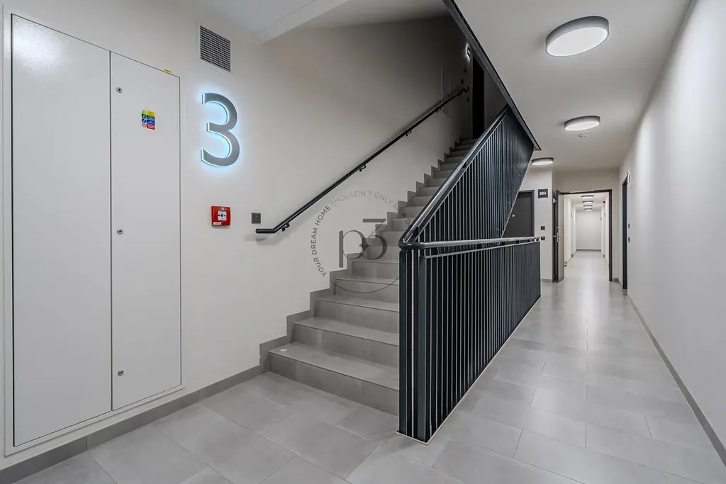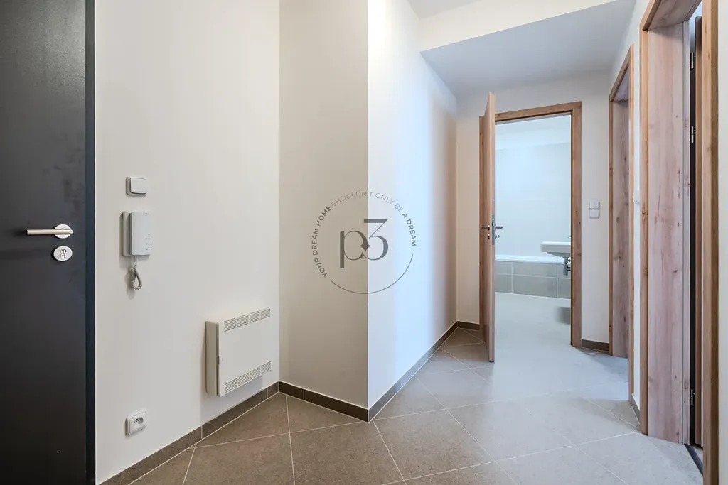 Byt nabízí obývací pokoj s přístupem na balkón a novou kuchyňskou linku včetně spotřebičů. Ložnice poskytuje dostatek soukromí a pohodlí. Koupelna je vybavena vanou a umyvadlem a WC. Součástí výbavy je i pračka. Chodba je prostorná pro umístění skříní pro dostatek úložného prostoru.