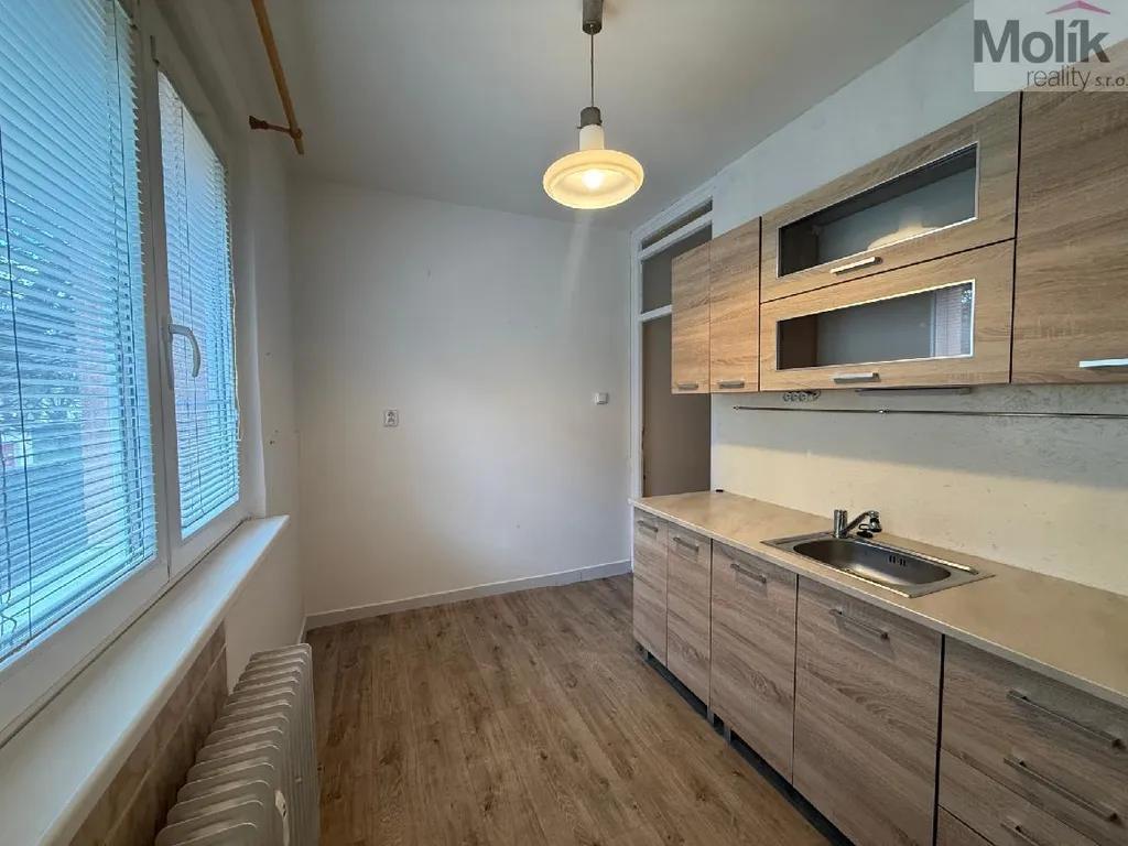 Bytová jednotka je v udržovaném stavu, vyměněná kuchyňská linka, koupelna je oddělena od toalety.