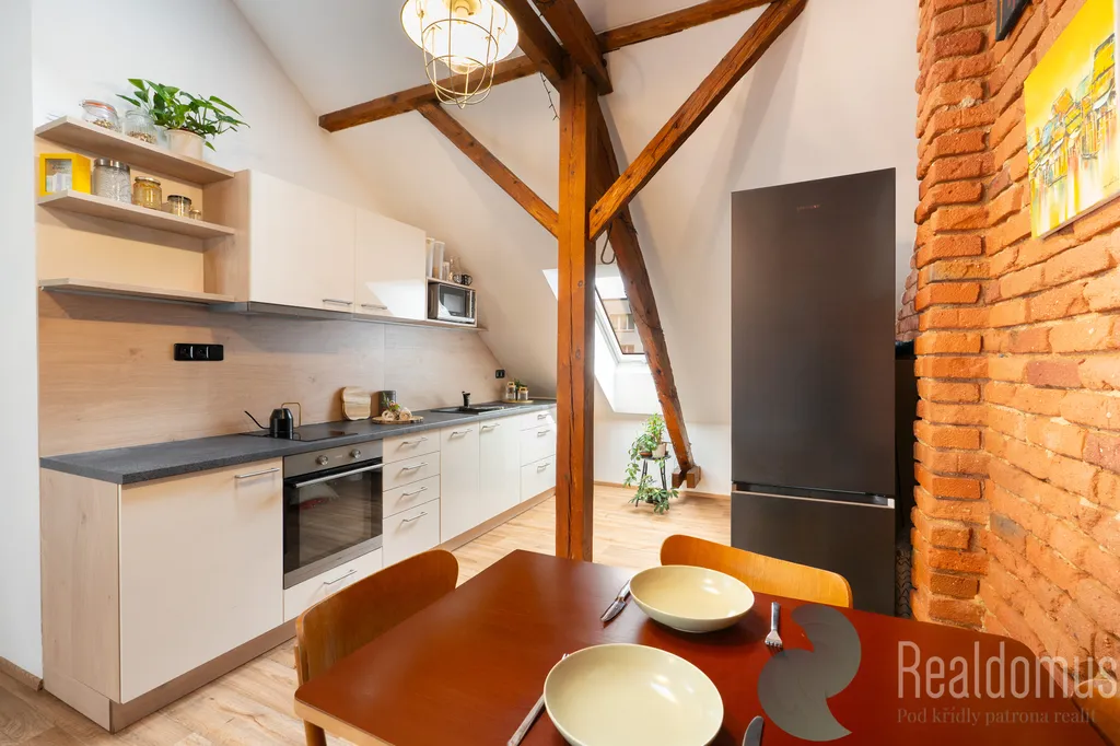 - 1 byt 2+kk (70m2) v podkroví užívaný majitelem (možnost vlastního bydlení nebo dalšího pronájmu).
