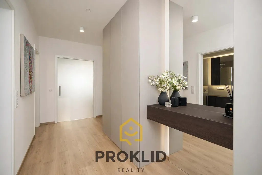 Velkou výhodou je zde komora navržená jako další místnost, která Vám spolu s vestavěným nábytkem kolem pračky a sušičky zajistí další úložný prostor. Byt je vybaven nábytkem na míru z prémiových materiálů, záclonami na míru a kvalitním osvětlením, kuchyně je osazena kvalitními spotřebiči značky Samsung.