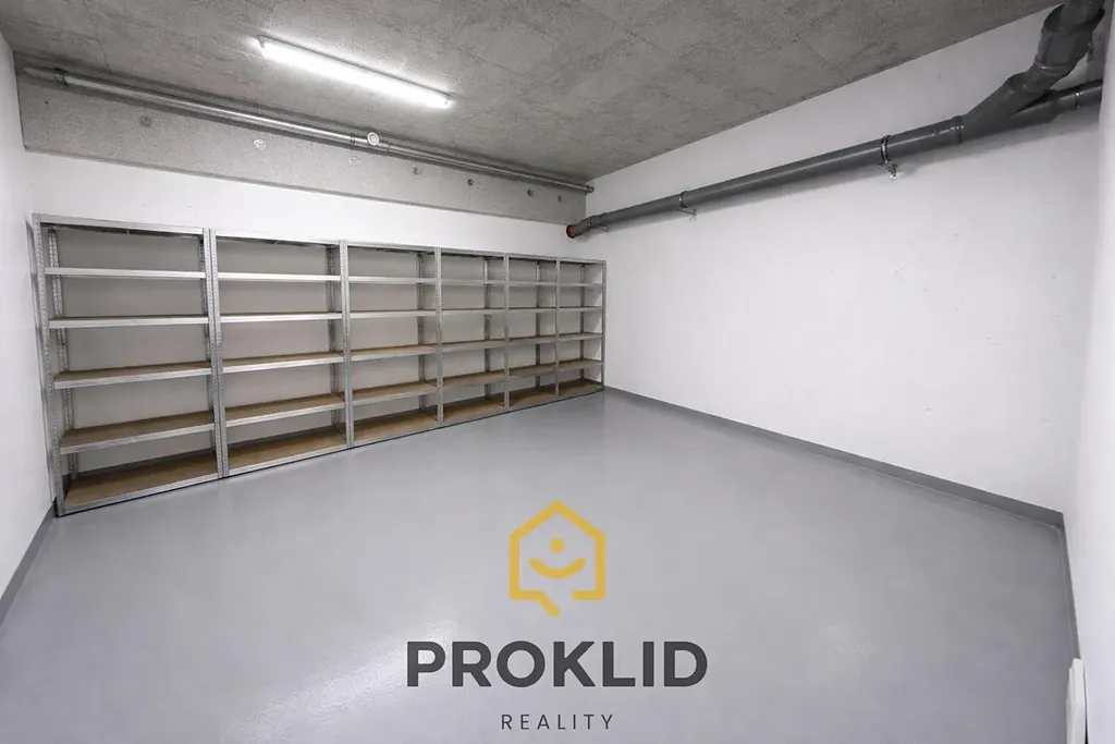 K bytu je podmínkou navíc přikoupit 2× garážové stání s vlastními el. zásuvkami a přípravou pro elektromobil na sloupu vedle stání. Dále 1× sklep, který zaujme svým nadstandardním prostorem (16,97 m²) a tím řeší kompletní problémy kolem úložných prostor majitelů bytů. V garážích je velice praktická umývací mistnost např. pro kola, kočárky atd.
