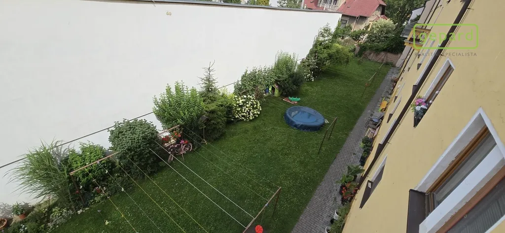 Vytápění bytu zajištují radiátory, na podlahách jsou masivní parkety a plovoucí podlaha a dlažba. Byt je ve velice dobrém stavu a k dispozici je dále samostatný sklep, společné prostory a možnost užívání pozemku ve vnitrobloku za domem.