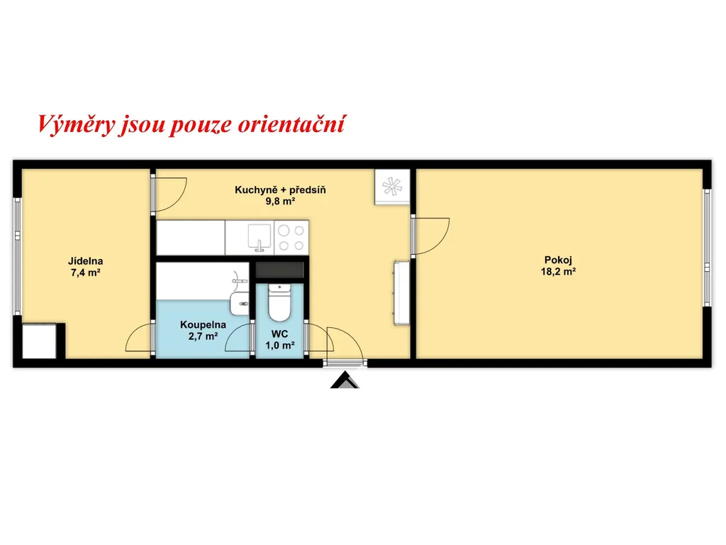 Celková plocha bytu včetně sklepa je 41 m2. Díky orientaci oken je prosvětlený a z pokoje má příjemný výhled do okolí.