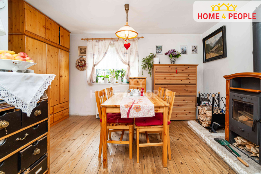 Vlastní stavba je zděná, pochází ze 60. let 20. století, je v dispozici 3+1 s 85 m² a prošla za posledních 8 let postupnou rekonstrukcí. Byla udělána výměna rozvodů elektřiny včetně rozvaděče a venkovní kapličky. Voda z kopané studny čištěná přes filtry s dostatkem vody, včetně venkovní funkční pumpy, rozvody i odpadů v plastu, septik na 6 m3 s vývodem pro odvoz na hranici pozemku. Opravami prošly i stěny, stropy, podlahy, okna plastová se síťkami, el. rolety, zabezpečovací systém, internetové připojení přes kabel nebo anténu. Velmi praktická kuchyňská linka s myčkou nádobí, varnou deskou, el. i mikrovlnou troubou, digestoří a spoustou úložných prostorů. Topení krbovými kamny v kombinaci s akumulačními kamny s termostatem. Objekt je částečně podsklepen a nachází se v něm vodárna (zánovní) i prostor pro úschovu potravin.