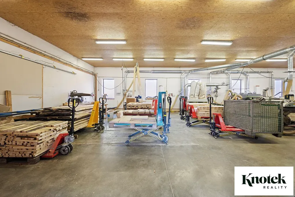 - BUDOVA SE SUŠÁRNOU DŘEVA, KANCELÁŘEMI, SKLADY, GARÁŽÍ A SOCIÁLNÍM ZÁZEMÍM