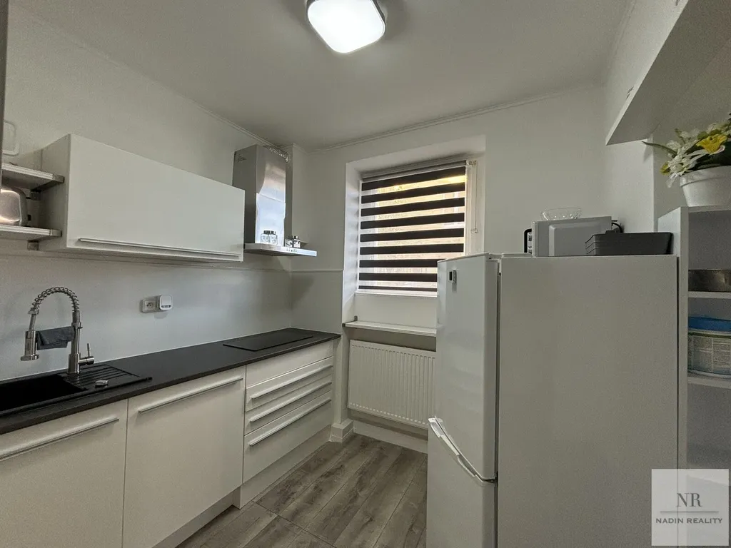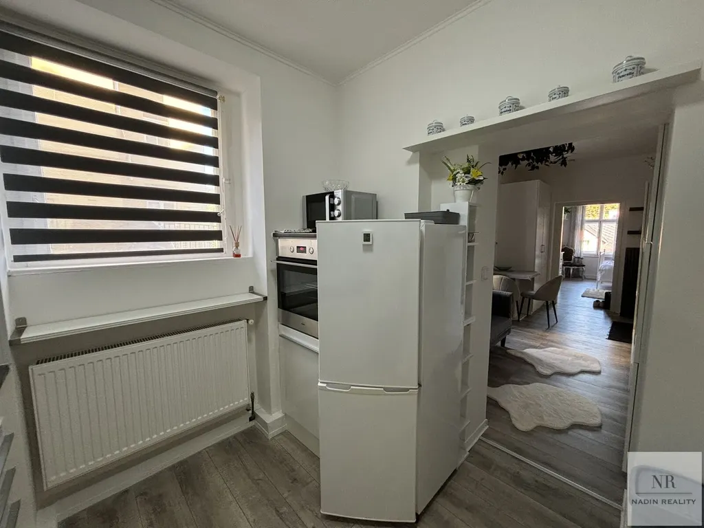 Součástí bytu je kompletní vybavení, které zahrnuje nábytek jako postel, skříně a komody, takže nový majitel může ihned začít užívat komfortního bydlení bez nutnosti dalších investic. Kuchyňská část je prakticky zařízena kuchyňskou linkou se spotřebiči, mezi nimiž se nachází lednice, mrazák, sporák se sklokeramickou deskou a horkovzdušná trouba. Toto uspořádání usnadňuje každodenní vaření a přípravu pokrmů.