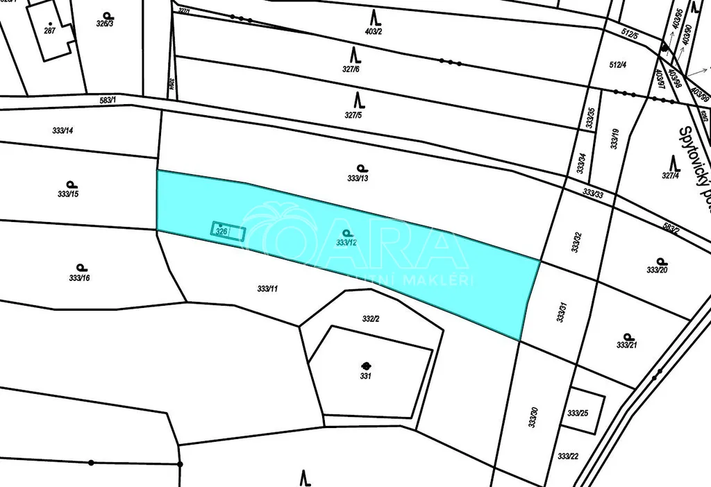 Zahrada o velikosti 2111 m2 (č.333/12) a parcela st. 326 o velikosti 31 m2, vedená jako zastavěná plocha a nádvoří.