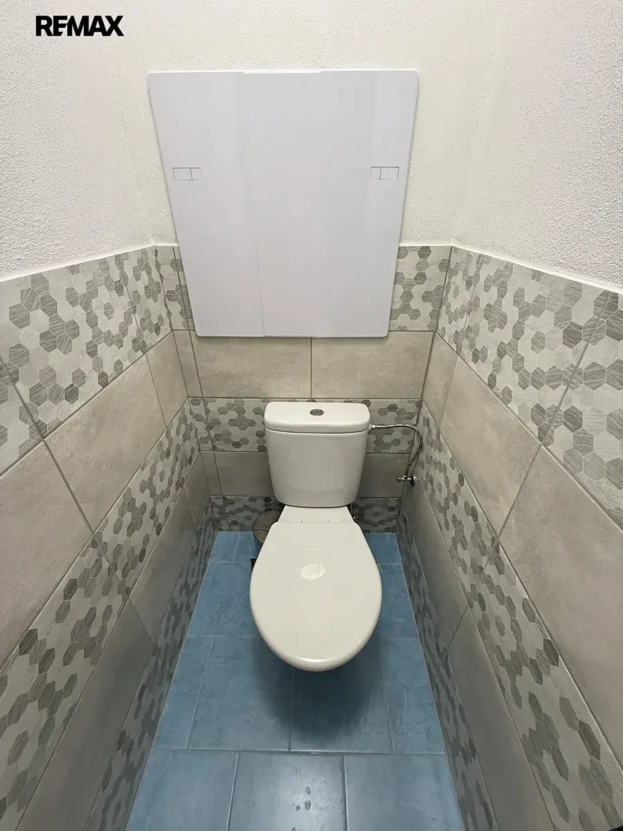 Byt je částečně vybavený. Dominantou je nová kuchyňská linka, která je osazena elektrickým dvouvařičem a lednicí, což zajišťuje základní komfort pro každodenní vaření. Koupelna a toaleta prošly kompletní rekonstrukcí, díky čemuž působí moderně a čistě. Součástí vybavení je také pračka, která je sice starší, ale plně funkční.