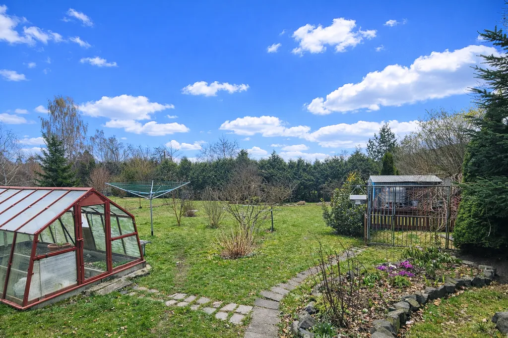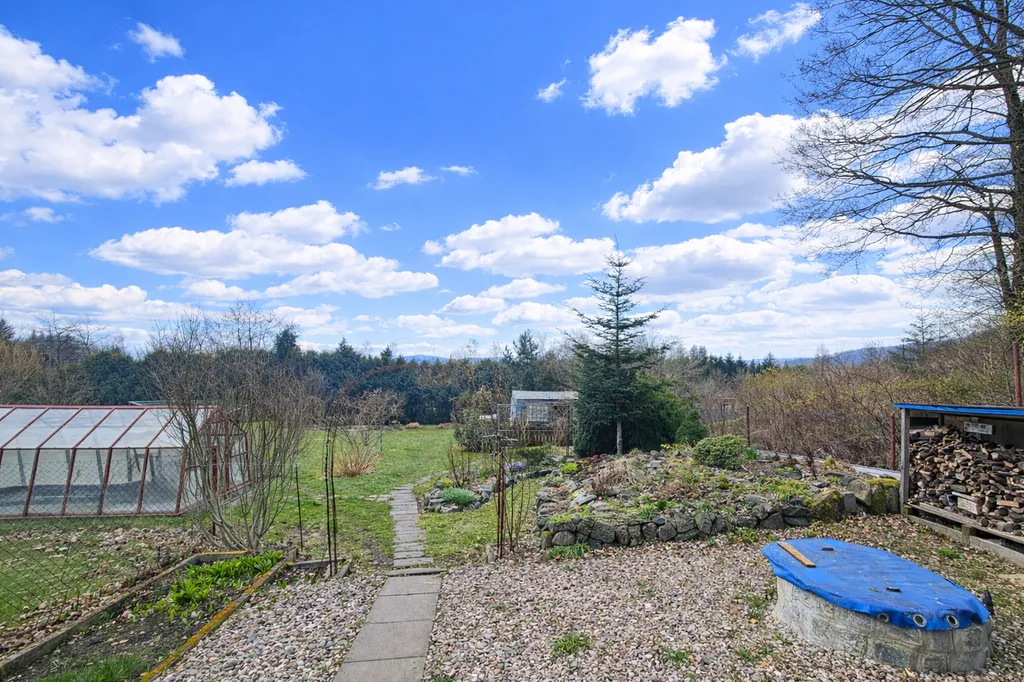 K bytu náleží plechová garáž na vlastním pozemku a také prostorná zahrada (cca 550m2), která nabízí příjemné zázemí pro relaxaci. Součástí je venkovní posezení pod pergolou a ohniště – ideální pro trávení volného času s rodinou či přáteli.