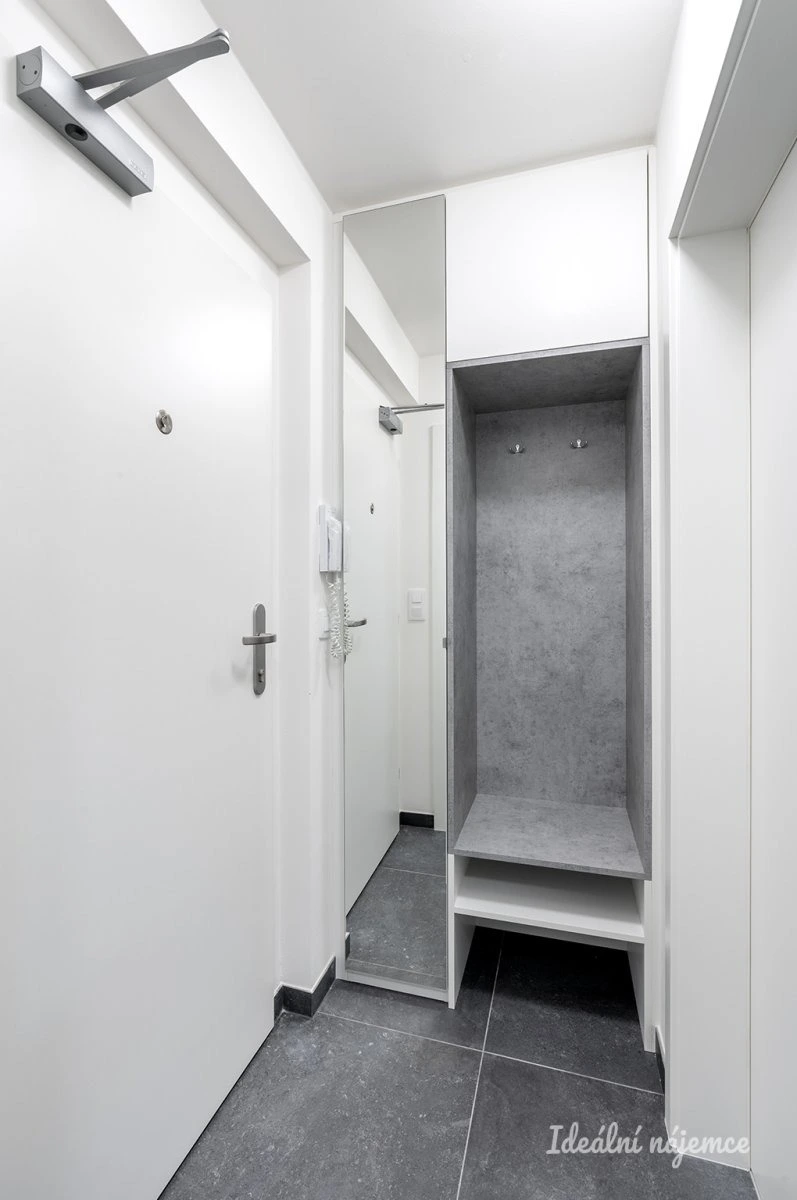 Kuchyňská linka je plně vybavená spotřebiči – indukční varná deska, trouba s horkovzduchem, myčka (šířka 60 cm) a lednice. Po dohodě je možné zdarma byt dovybavit postelí nebo gaučem a pračkou.