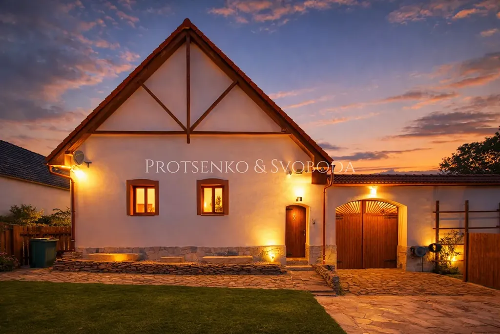 Atmosféru místa dotváří uzavřený dvůr, krásně upravené venkovní plochy, kamenné prvky, dřevo, velkorysá zahradní kuchyně, relaxační zóna i pečlivě vysazená zahrada s ovocnými stromy. Celý areál působí harmonicky, bezpečně a mimořádně reprezentativně. Je to místo, kde si umíte představit klidné rodinné ráno, letní večer s přáteli, firemní setkání i víkendový pobyt hostů, kteří sem přijedou za odpočinkem a zážitkem.