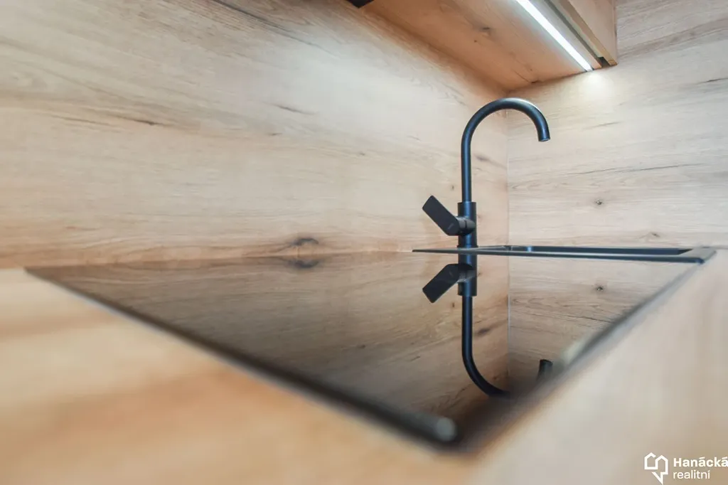 - Prostorná kuchyně se spotřebiči (elektrická trouba, indukce, myčka nádobí, mikrovlnná trouba, lednice s mrazákem).