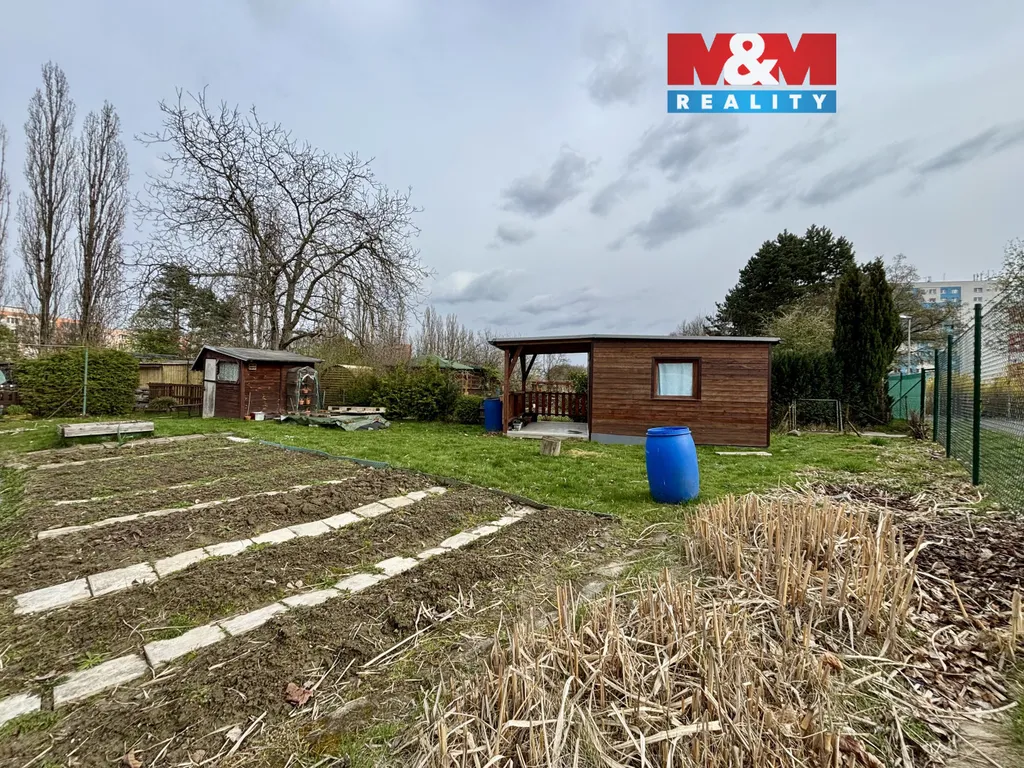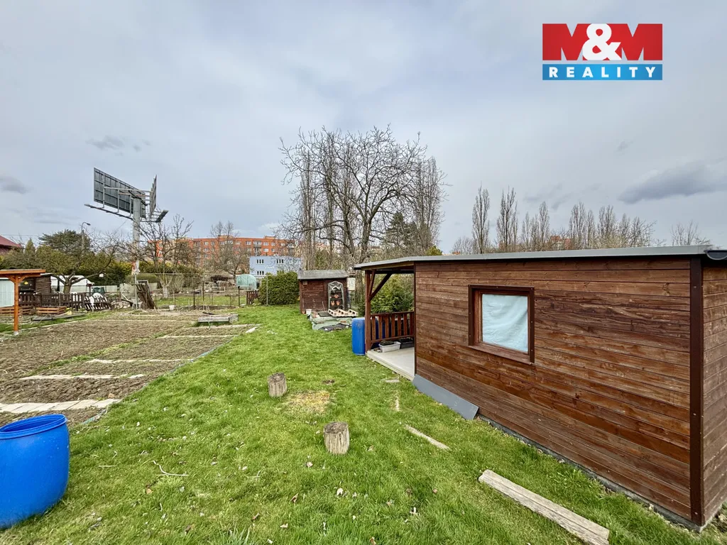 Součástí zahrady je dřevěná chatka s možností přespání o rozměrech 3×3,5 m, která poskytuje příjemné zázemí pro víkendový odpočinek. Na chatku navazuje terasa o velikosti, ideální pro posezení s rodinou či přáteli. Dále se na pozemku nachází praktická kůlna na nářadí a zavedený vodovod s pitnou vodou.
