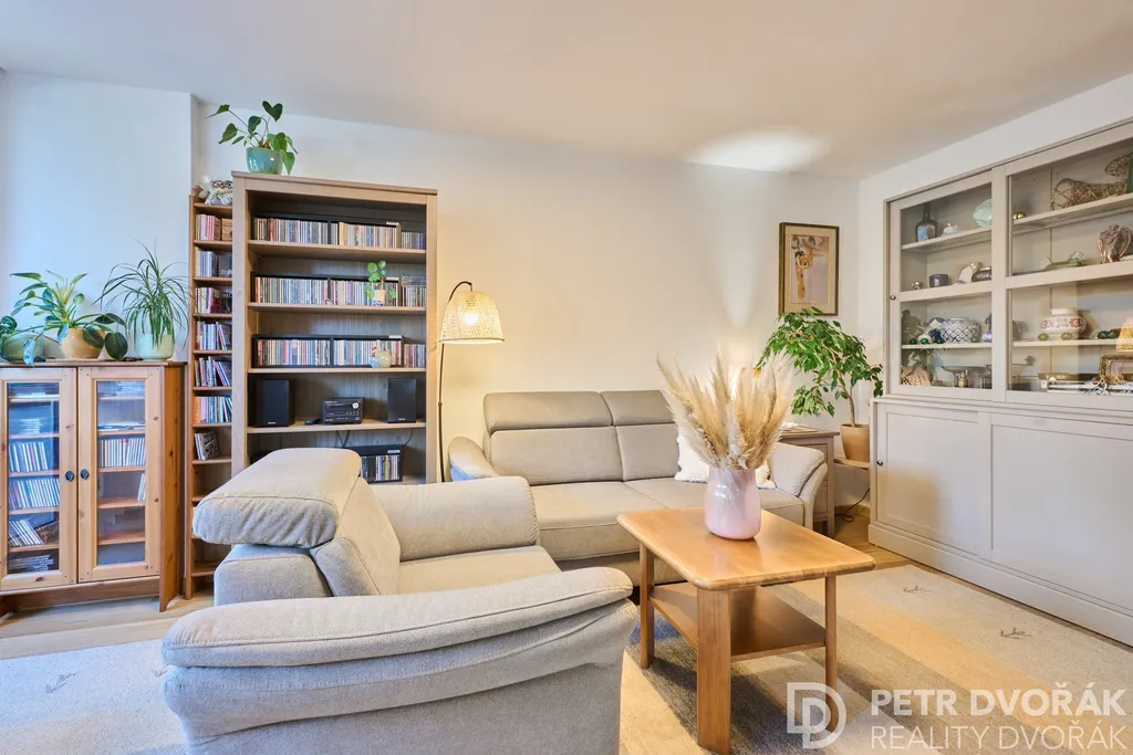 Byt prošel v roce 2024 kompletní rekonstrukcí odbornou firmou — nové rozvody elektřiny a vody, radiátory, podlahy včetně podkladů, kuchyňská linka i spotřebiče. Trojskla jsou vybavena elektricky ovládanými roletami na dálkové ovládání. Akusticky upravené stěny a stropy zajišťují skutečný klid v každé části bytu. Interiér dokreslují dveře z dubové dýhy sladěné s podlahou.