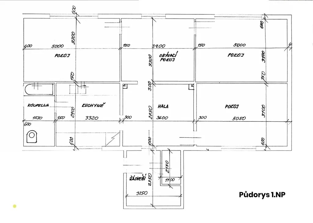- Obývací pokoj s krbem, ložnice, dva dětské pokoje, kuchyně, koupelna s vanou a toaletou, vstupní předsíň a zádveří - půdorys podlaží je součástí nabídky.