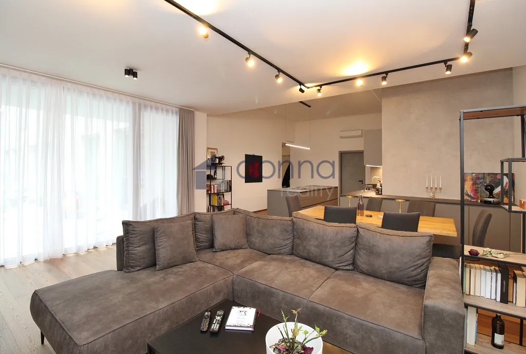 Nabízíme pronájem bytu 3+kk/T, 105m2, v přízemí novostavby, v ulici Křižíkova, Praha 8 - Karlín. Byt sestává z prostorného obývacího pokoje s kuchyňským koutem, dvou ložnic a dvou koupelen, předsíně a technické místnosti. Z jedné ložnice se vchází do koupelny s WC, druhá koupelna je v blízkosti druhé ložnice, další WC je zvlášť. V kuchyni lednice s mrazákem, myčka, indukční varná deska, elektrická trouba. V technické místnosti pračka v kombinaci se sušičkou. V předsíni vestavěné skříně, další skříně jsou v obou ložnicích. Topení podlahové. Okna všech pokojů jsou situovány do tichého atria. K bytu náleží 2 garážová stání a sklep. Dům se nachází v blízkosti metra B, stanice Křižíkova.