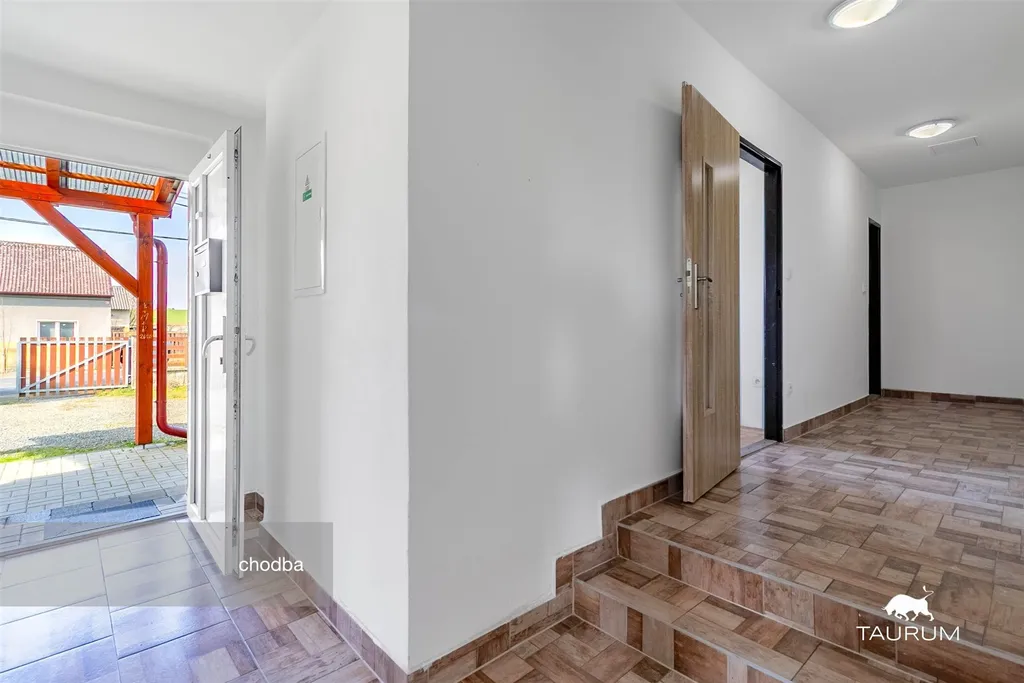 Prošel rekonstrukcí a má samostatný vstup, před kterým se nachází zastřešený přístřešek vhodný pro letní posezení.