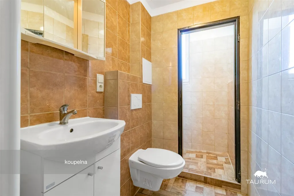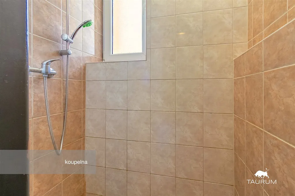 V koupelně se nachází sprchový kout. Kuchyňská linka je v dobrém stavu.