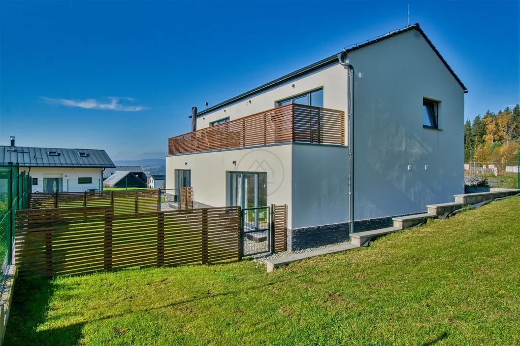 Z obou jednotek je zajištěn vstup na betonovou terasu a vlastní oplocenou zahradu se zahradním domkem, která nabízí ideální zázemí pro relaxaci. Jedná se o novostavbu z roku 2023 s energetickou náročností třídy B – velmi úsporná. Interiér i technologie odpovídají vysokému standardu: vytápění je napojeno na chytrou domácnost LOXONE pro efektivní správu na dálku a přístup do apartmánů zajišťují chytré zámky Nuki. Parkování se nachází přímo před domem.