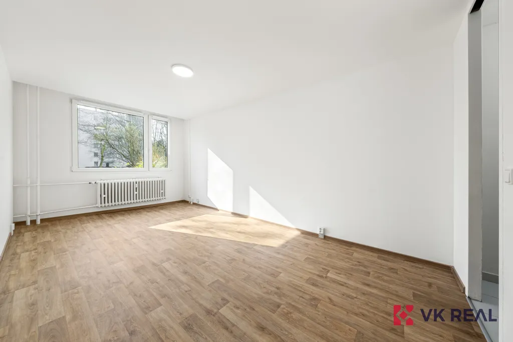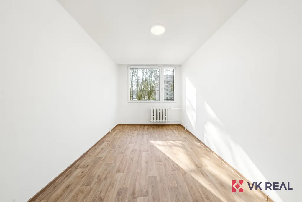 Nabízíme vám v exkluzivním zastoupení byt 2+kk o ploše 46,7 m², družstevní vlastnictví, situovaný v přízemí zatepleného panelového domu. Byt prošel kompletní rekonstrukcí: nové podlahy, dveře, zárubně, kuchyňská linka, koupelna a toaleta. Nové jsou také elektrické rozvody v koupelně i kuchyňském koutě. V pokojích jsou rozvody vedené v lištách.