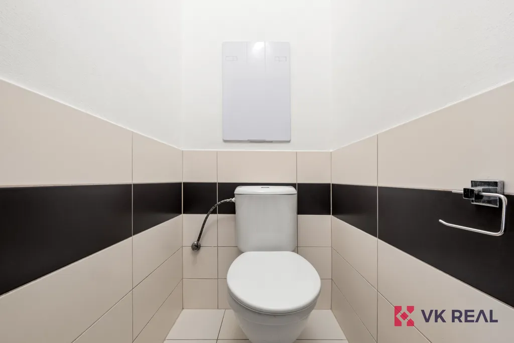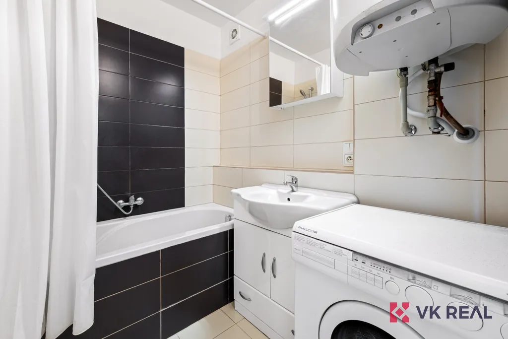Kuchyň je zcela nová: kuchyňská linka, trouba, elektrická varná deska, lednice s mrazákem. V koupelně je pračka a vlastní ohřev teplé vody. K bytu náleží praktická komora naproti vstupním dveřím.