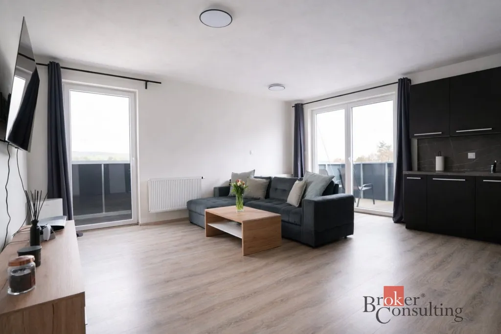 Hlavní obytný prostor s kuchyňským koutem nabízí nadstandardní velikost a vzdušnost, díky čemuž působí celý byt velmi příjemně a otevřeně. Samostatná ložnice pak poskytuje dostatek soukromí a klidu.