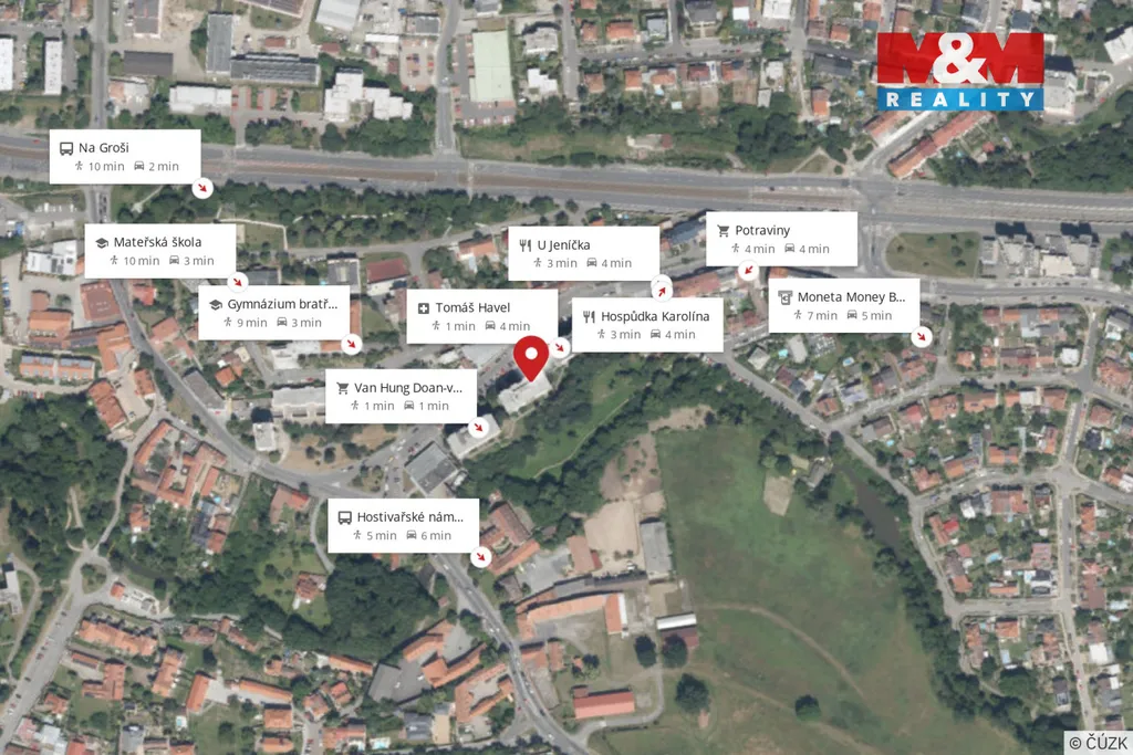 V blízkosti domu se nachází oblíbené přírodní lokality jako Lesopark Hostivař a Hostivařská přehrada, které nabízejí široké možnosti pro relaxaci i sportovní aktivity.