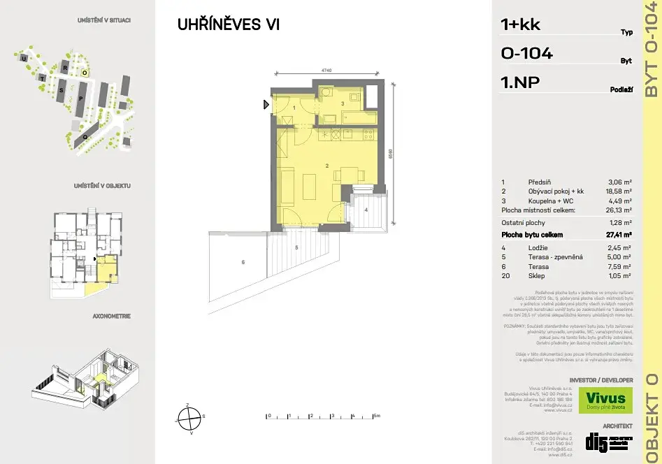 Tento byt s terasou se nachází v právě budované šesté etapě projektu VIVUS UHŘÍNĚVES. V předchozích letech zde bylo vybudováno více jak 1100 bytů, supermarket nebo multifunkční sportovní hřiště.