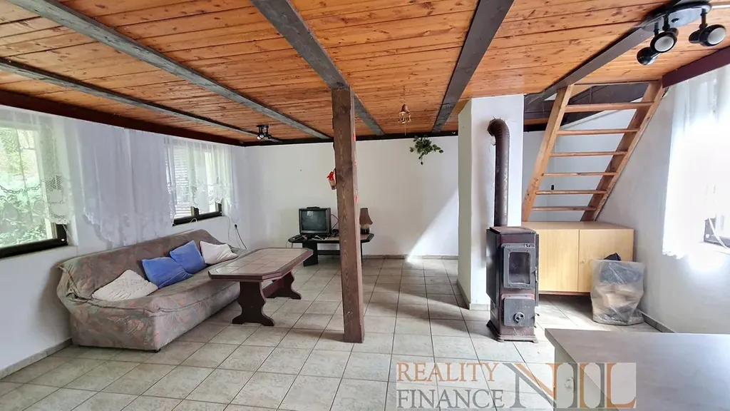 Vybavení chaty: chata je vybavena kuchyňskou linkou vč. spotřebičů (elektrické sporák, lednička), v obývacím pokoji je krb a krbová kamna. Ostatní zařízení zůstane dle dohody.