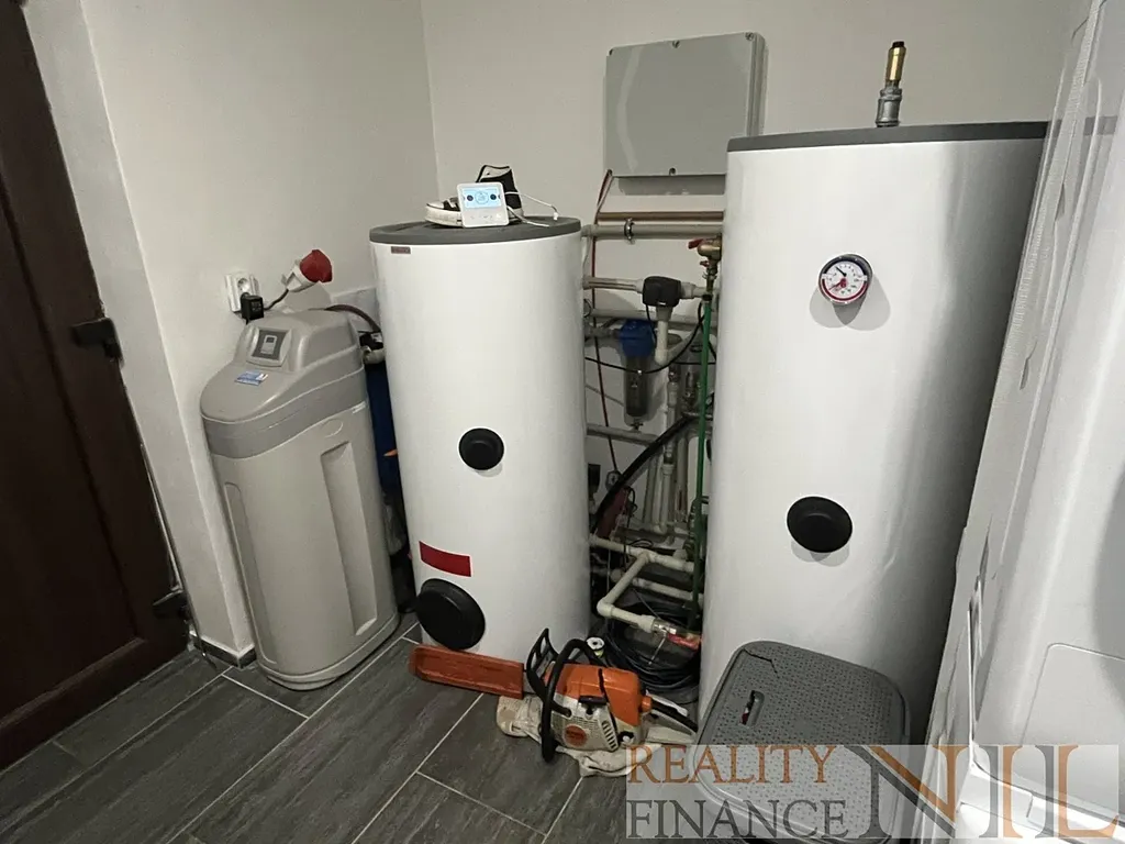 bojler - Topení polohovým vytápěním + krbová vložka v obývacím pokoji - Vlastní studna s filtrací a UV