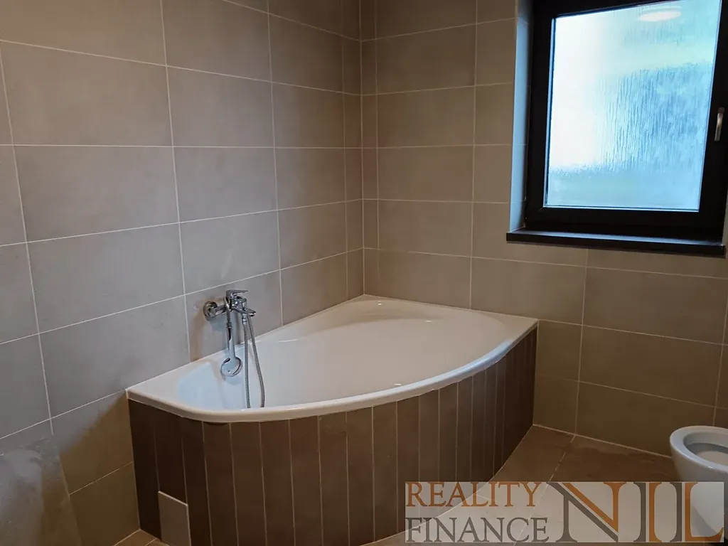 Prostorná koupelna a technická místnost s pračkou a sušičkou