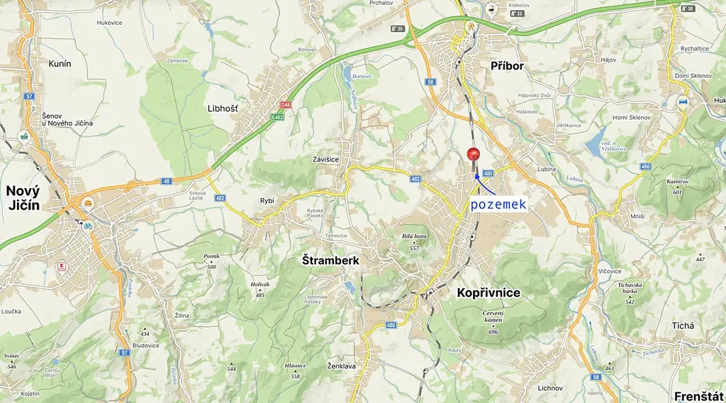 Lokalita: Pozemek se nachází blízko centra Kopřivnice, v průmyslovém parku, což zajišťuje